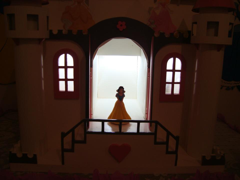 O castelo é totalmente artesanal, feito em MDF, com luz e movimento.